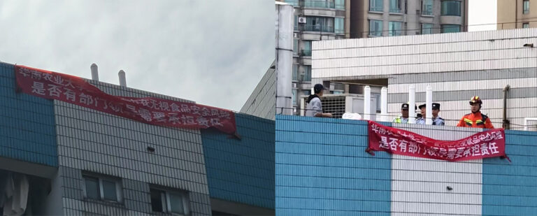 广州华南农业大学宿舍楼顶学生站天台呼吁重视食品安全